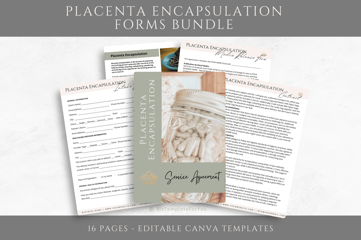 Empower your placenta encapsulation business with our comprehensive set of editable contracts and intake forms.