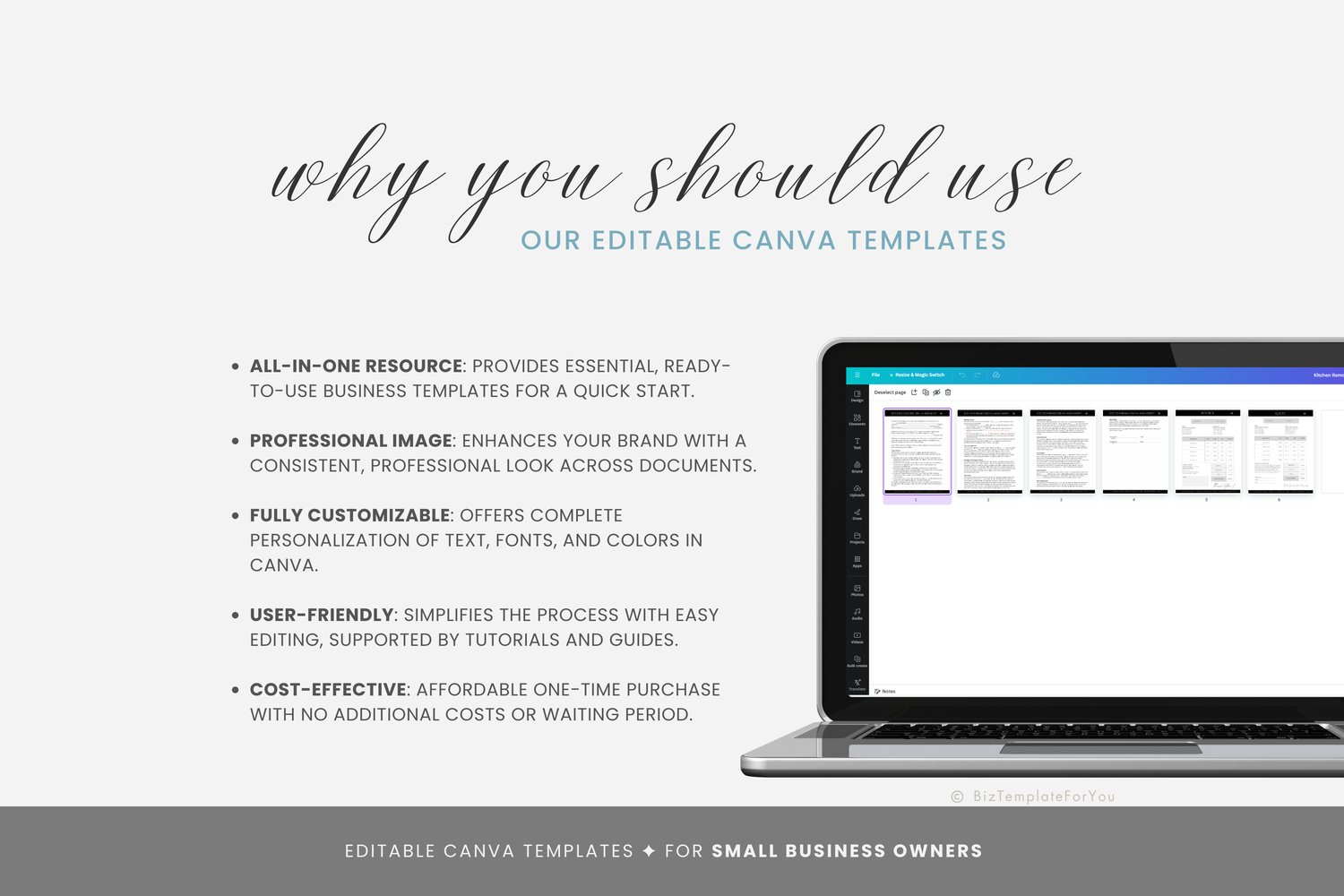 + All elements of our templates are FREE. BizTemplateForYou bears no responsibility for situations wherein the client utilizes PRO elements within Canva, resulting in charges incurred by Canva.