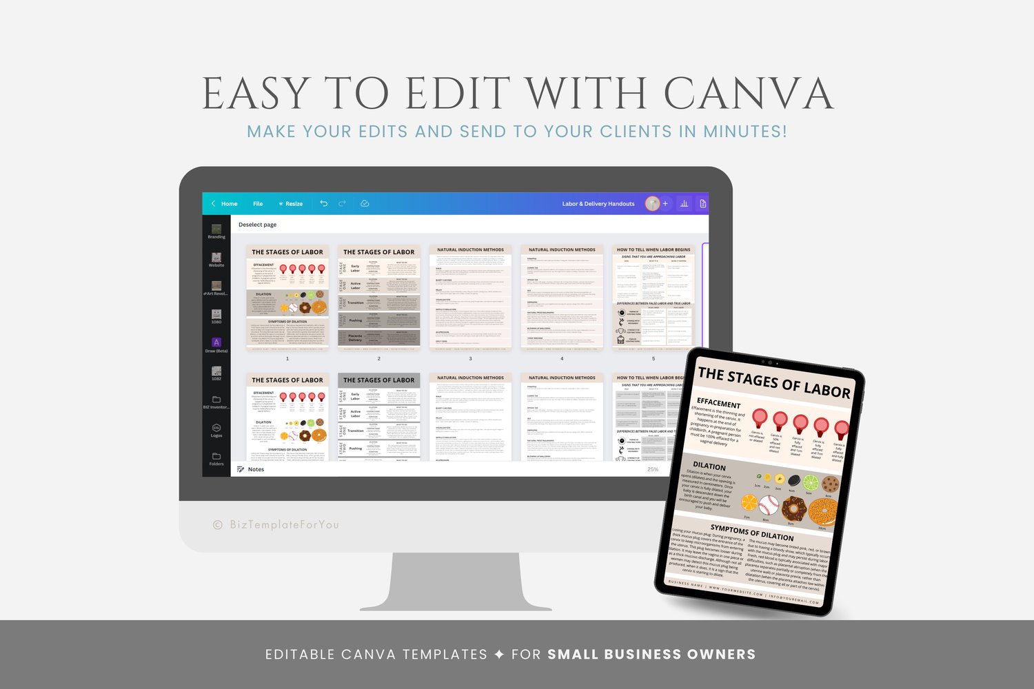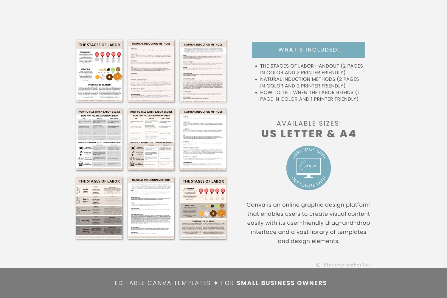 Editable Labor & Delivery Handout Templates, Doula Handouts, Birth Education, Childbirth Resource, Stages of Labor Handout Canva Template #2002