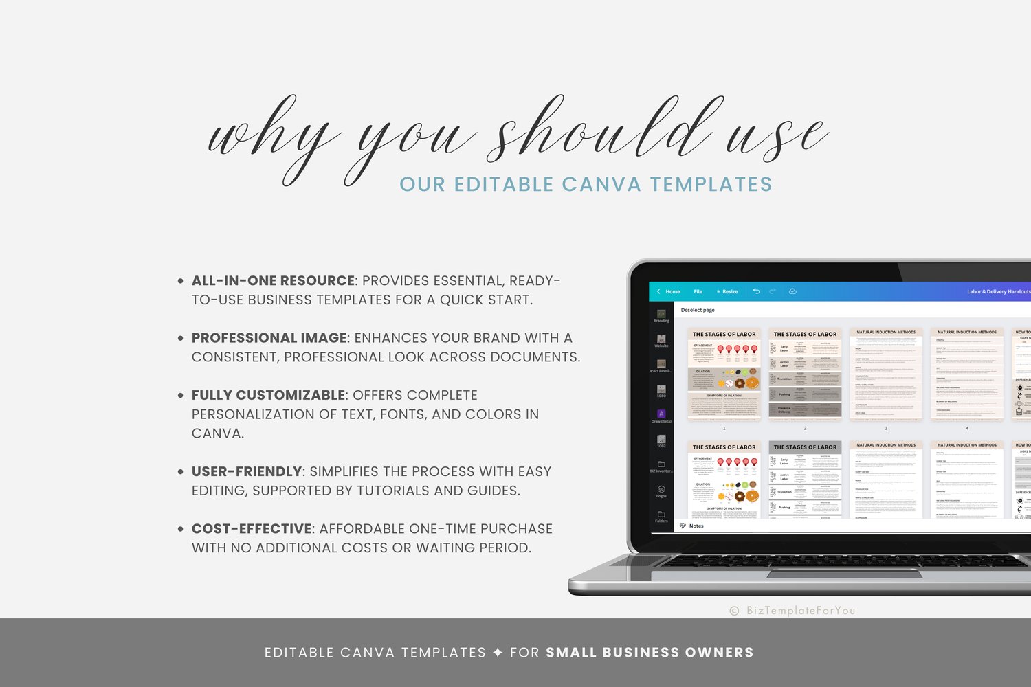 The Labor & Delivery Handout Templates Bundle is a valuable resource for birth professionals, including doulas and midwives. It includes various handouts that provide evidence-based information on labor and delivery topics.