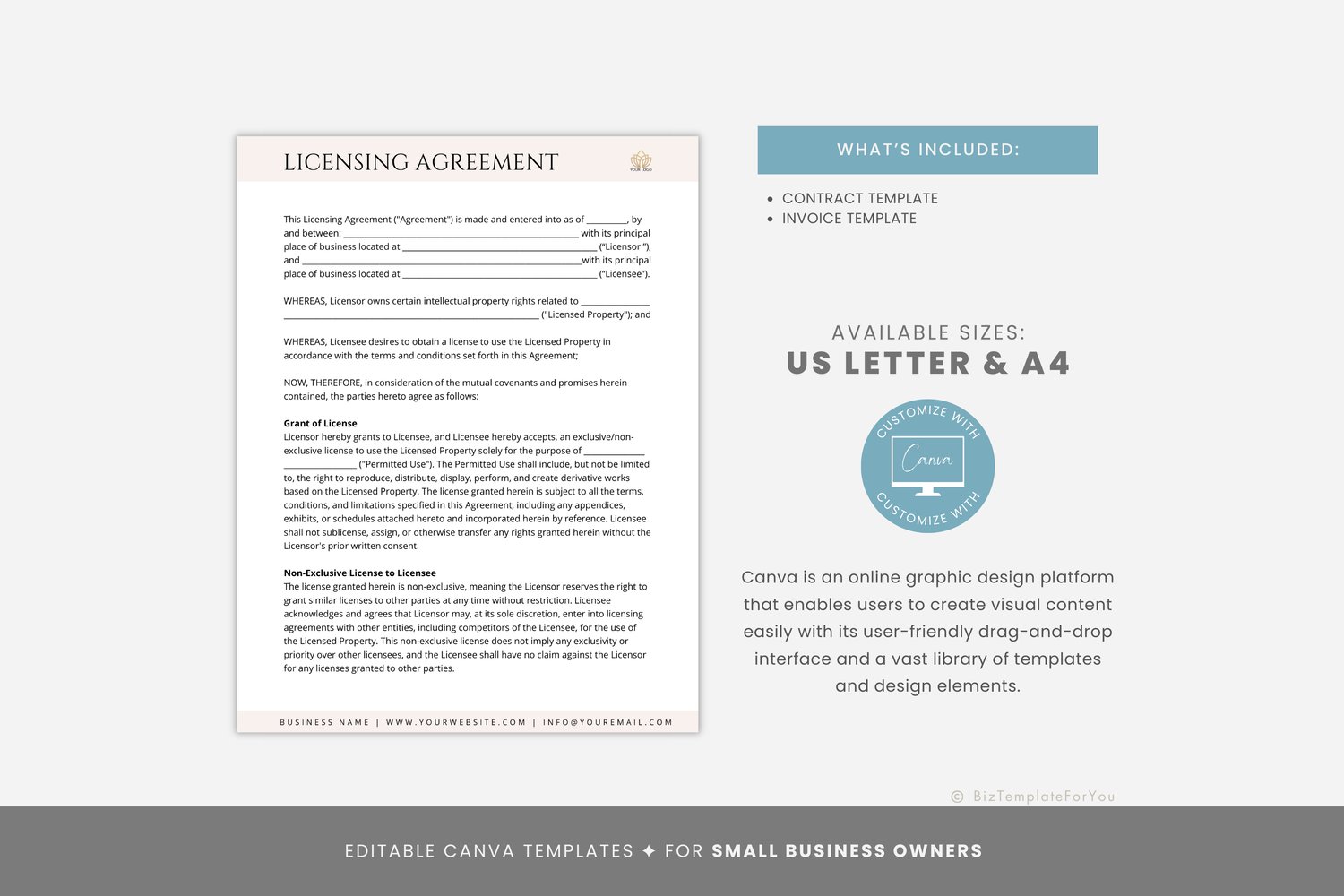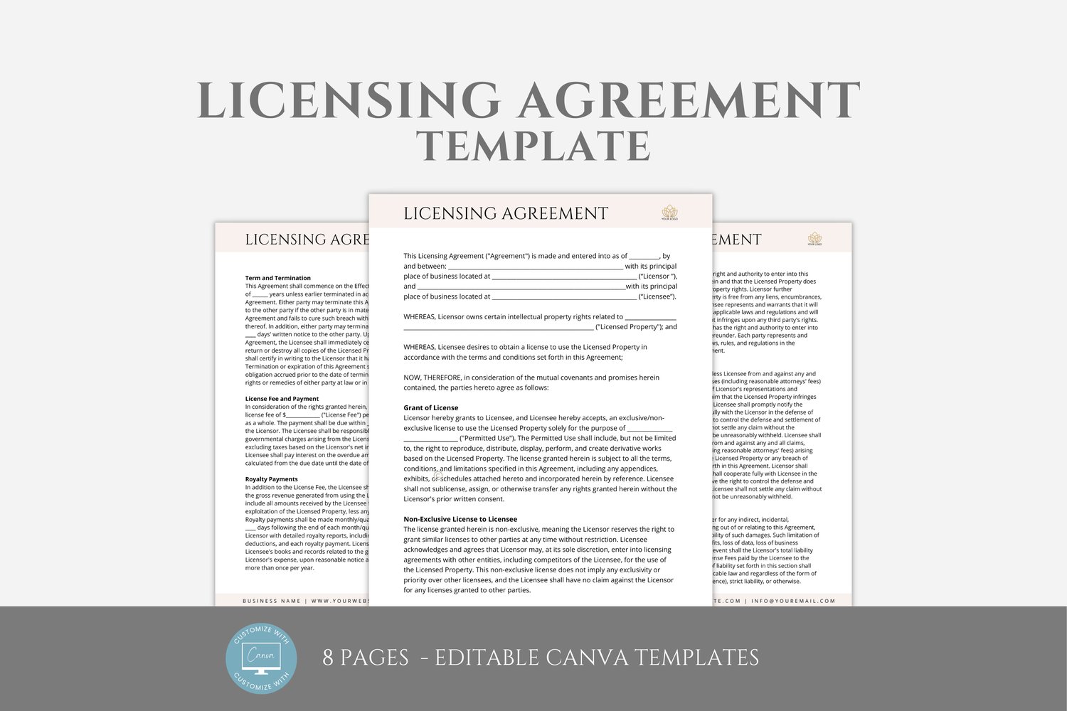 Editable Licensing Agreement Template, Product Licensing Contract, Content Licensing Contract, Digital Media Licensing Form, Canva editable #6098