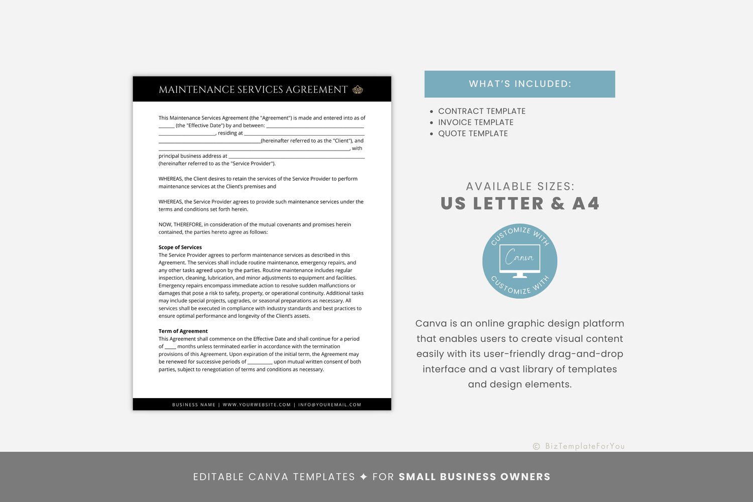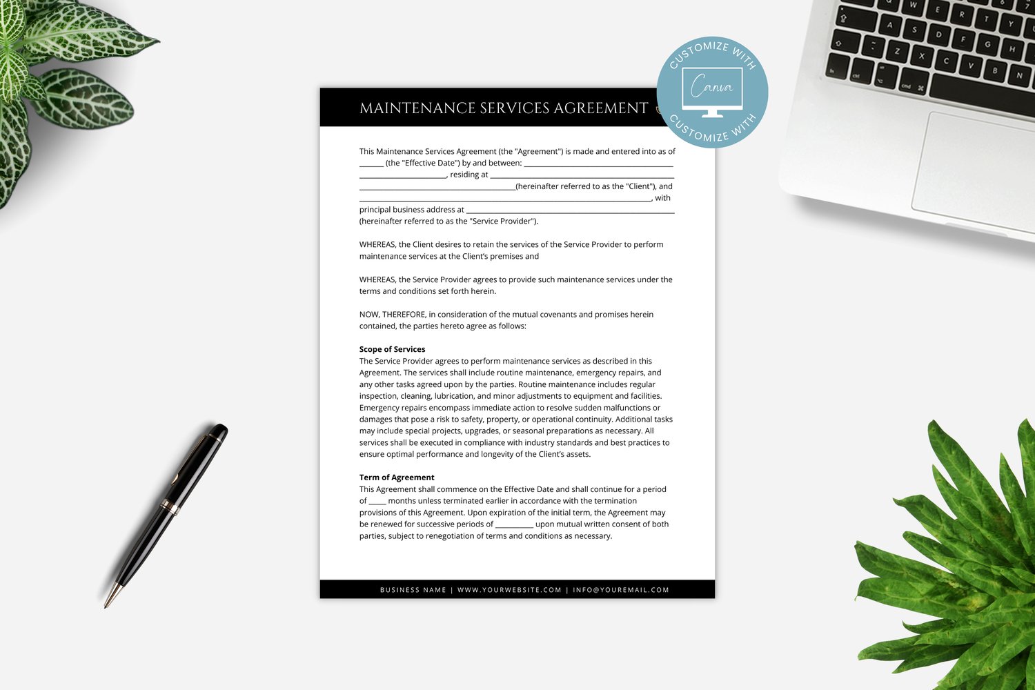 Editable Maintenance Service Agreement, Facility Maintenance Contract, Property Maintenance Services, Commercial Maintenance, Canva editable #6092