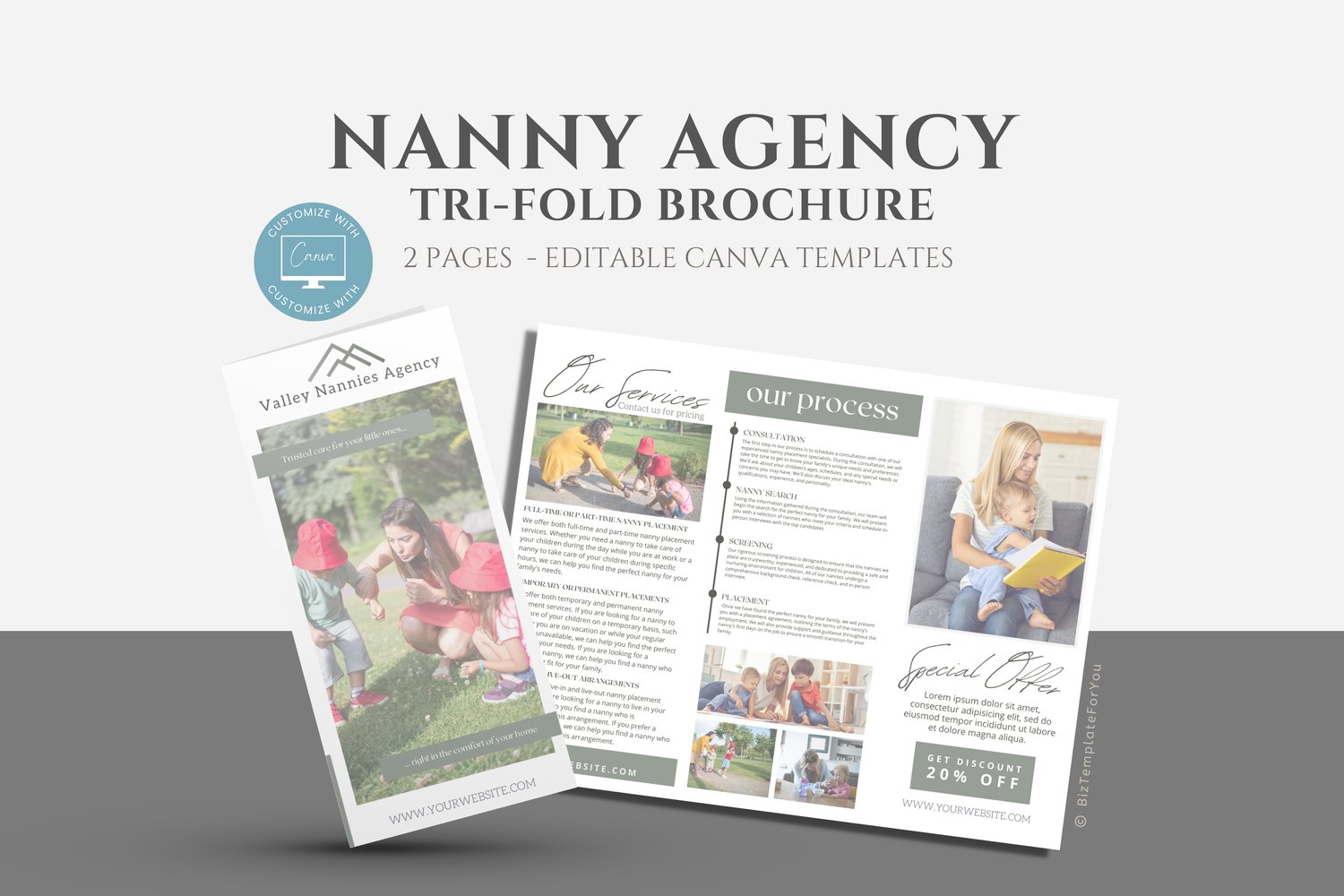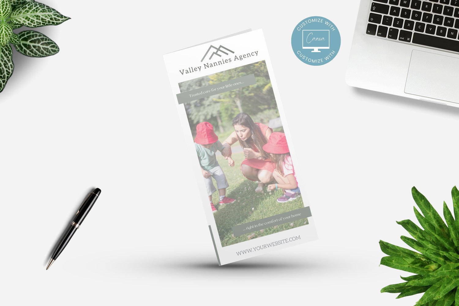 Nanny Agency Trifold Brochure Template, Nanny Marketing Flyer Template, Canva templates for Babysitters and other Childcare Specialists #3012
