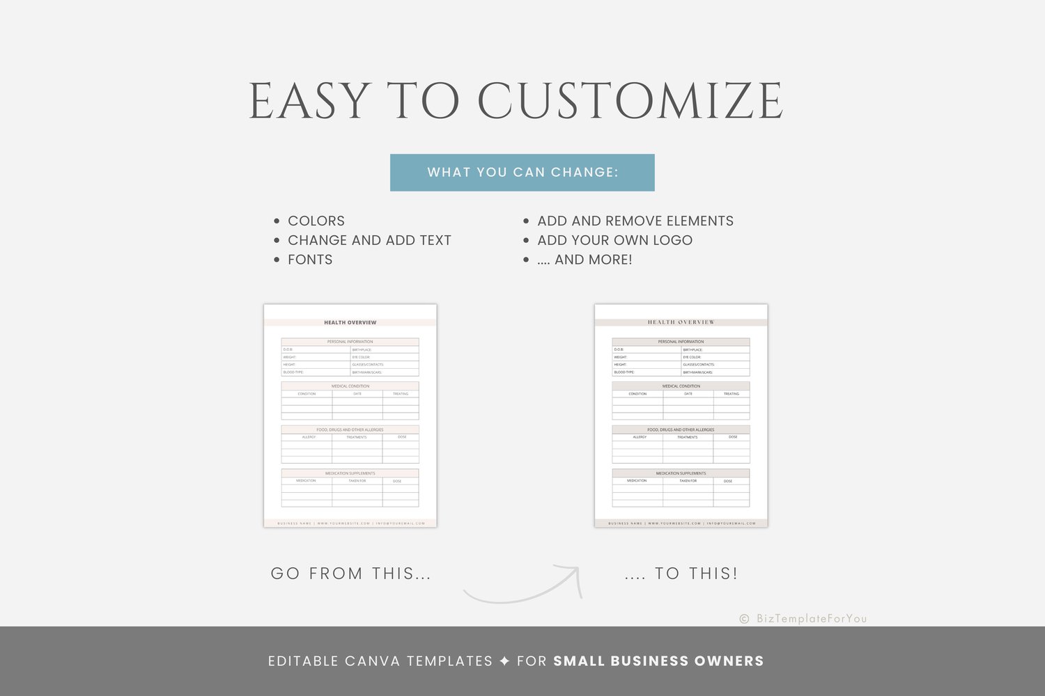 + All elements of our templates are FREE. BizTemplateForYou bears no responsibility for situations wherein the client utilizes PRO elements within Canva, resulting in charges incurred by Canva.