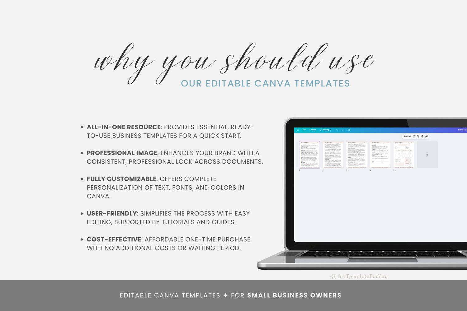+ All elements of our templates are FREE. BizTemplateForYou bears no responsibility for situations wherein the client utilizes PRO elements within Canva, resulting in charges incurred by Canva.