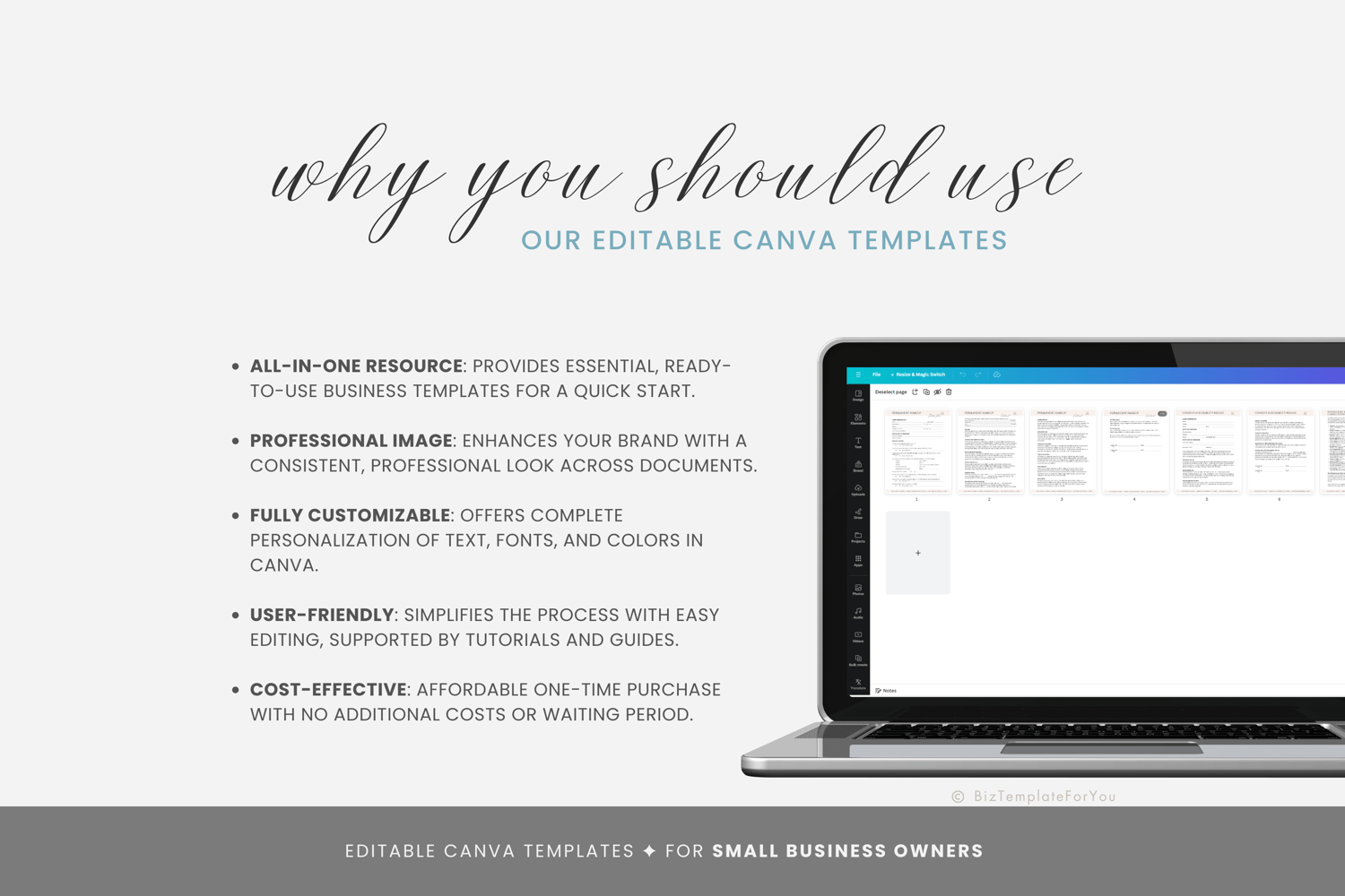 + All elements of our templates are FREE. BizTemplateForYou bears no responsibility for situations wherein the client utilizes PRO elements within Canva, resulting in charges incurred by Canva.