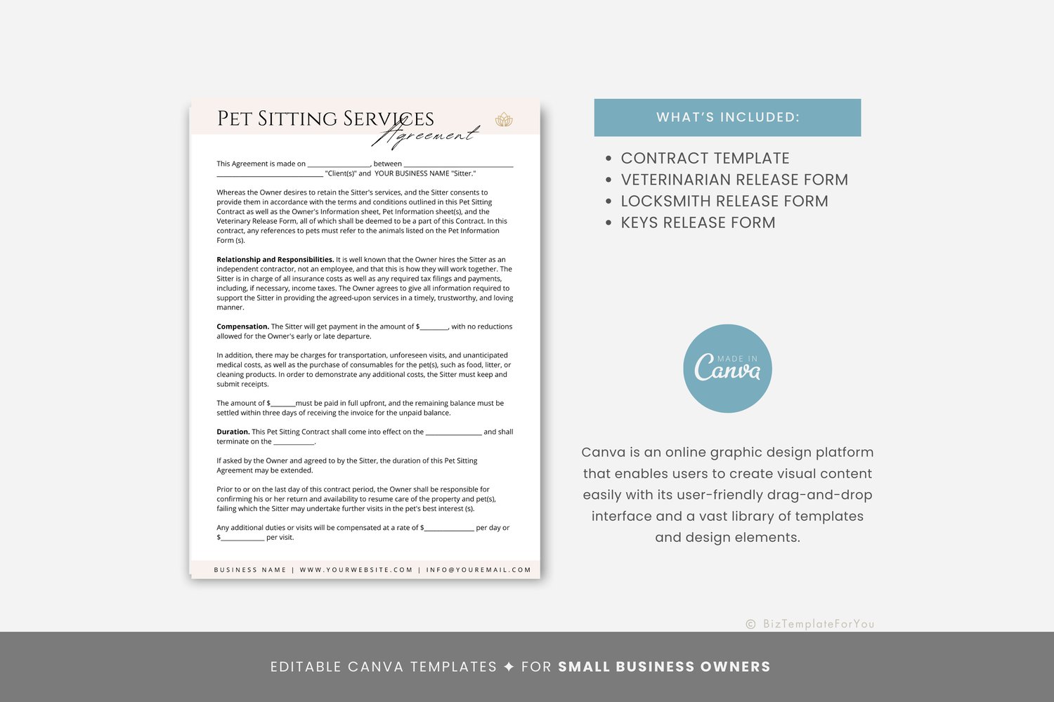 Editable Pet Sitting Contract Template, Pet Sitter Contract Template, Pet Sitting Service Agreement, Pet Sitter Business Form, edit in Canva #4036