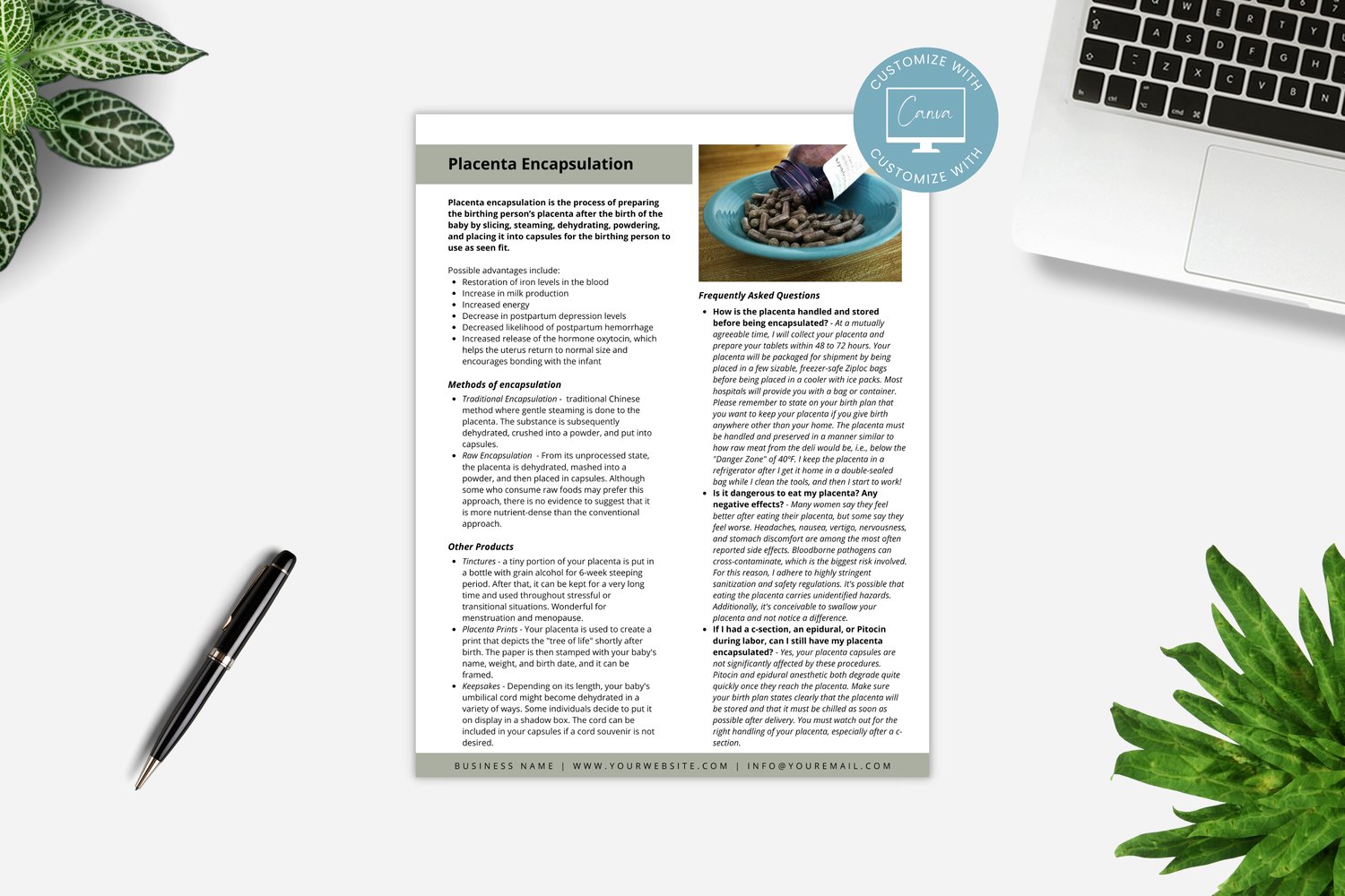 ✦ HOW TO USE YOUR PLACENTA ENCAPSULATION HANDOUT TEMPLATE ✦