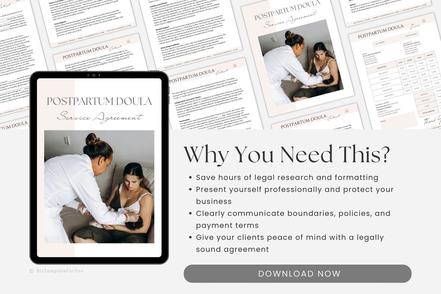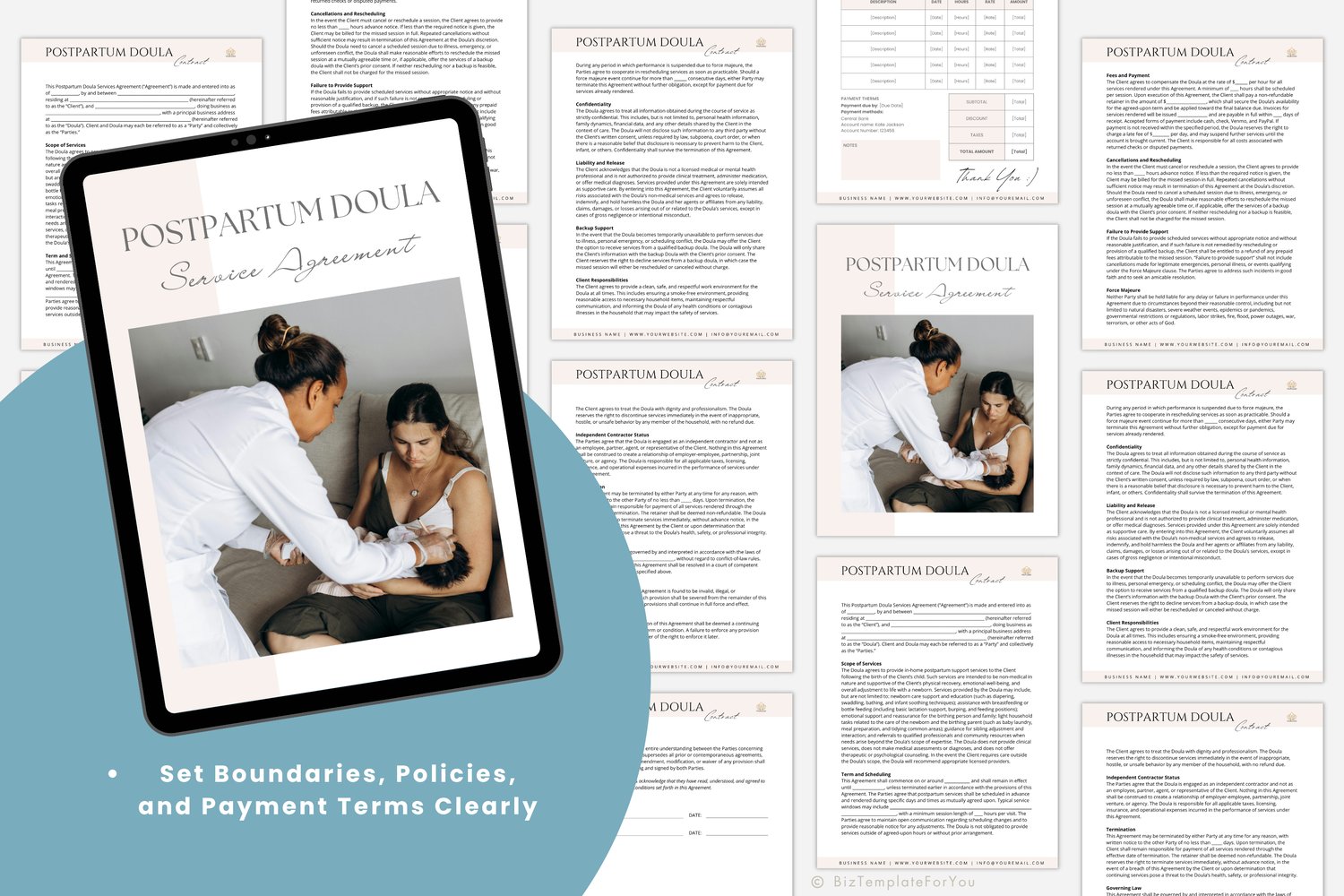 Postpartum Doula Contract Template, Editable Service Agreement Form for Doulas, Doula Client Contract, Canva Template, Doula Paperwork #1066