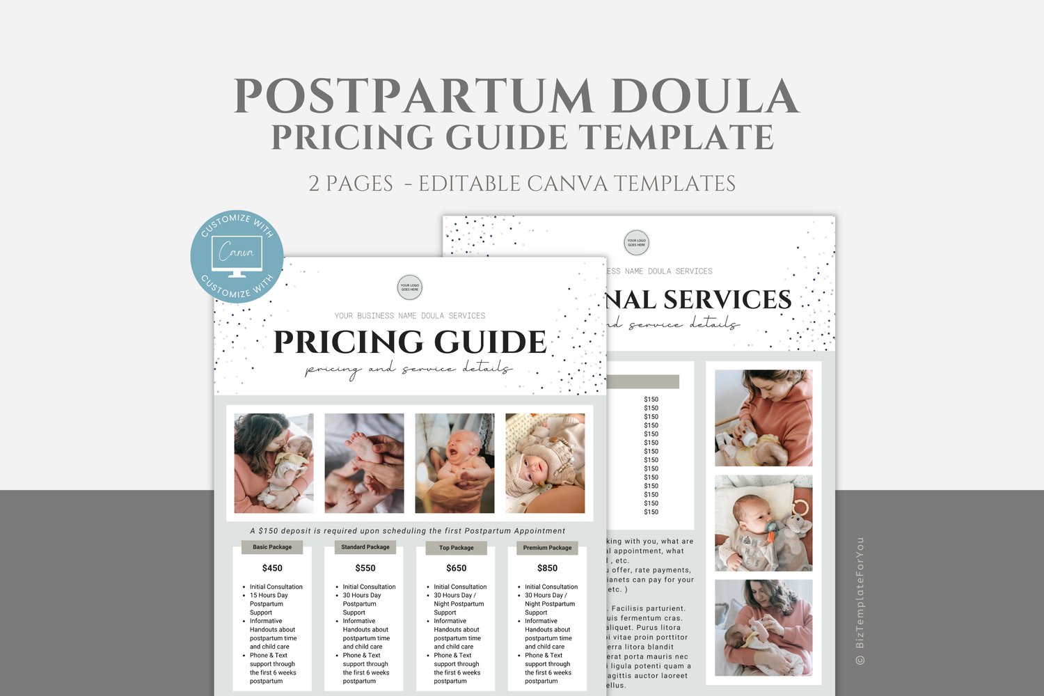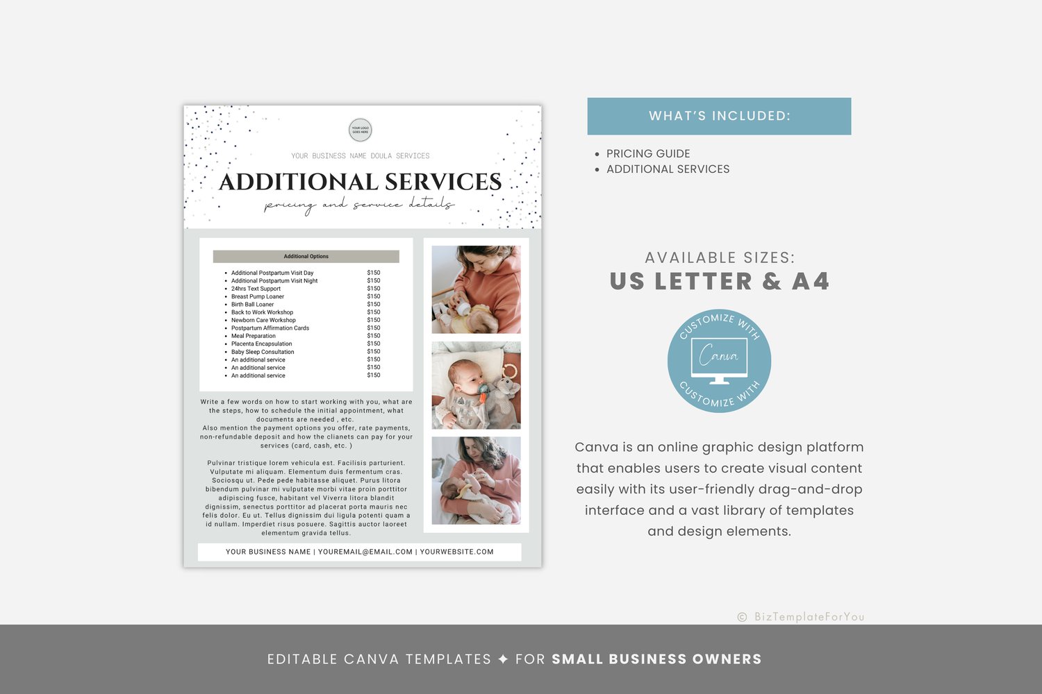 Postpartum Doula Price List, Editable Rate Sheet, Price Packages Flyer Template, Doula Pricing Guide, Doula Brochure, Canva editable #1082