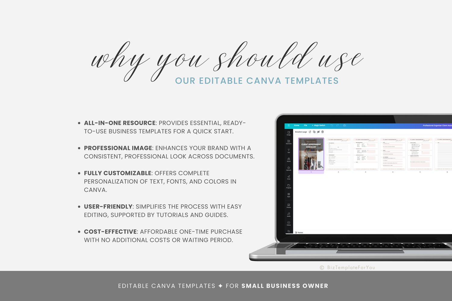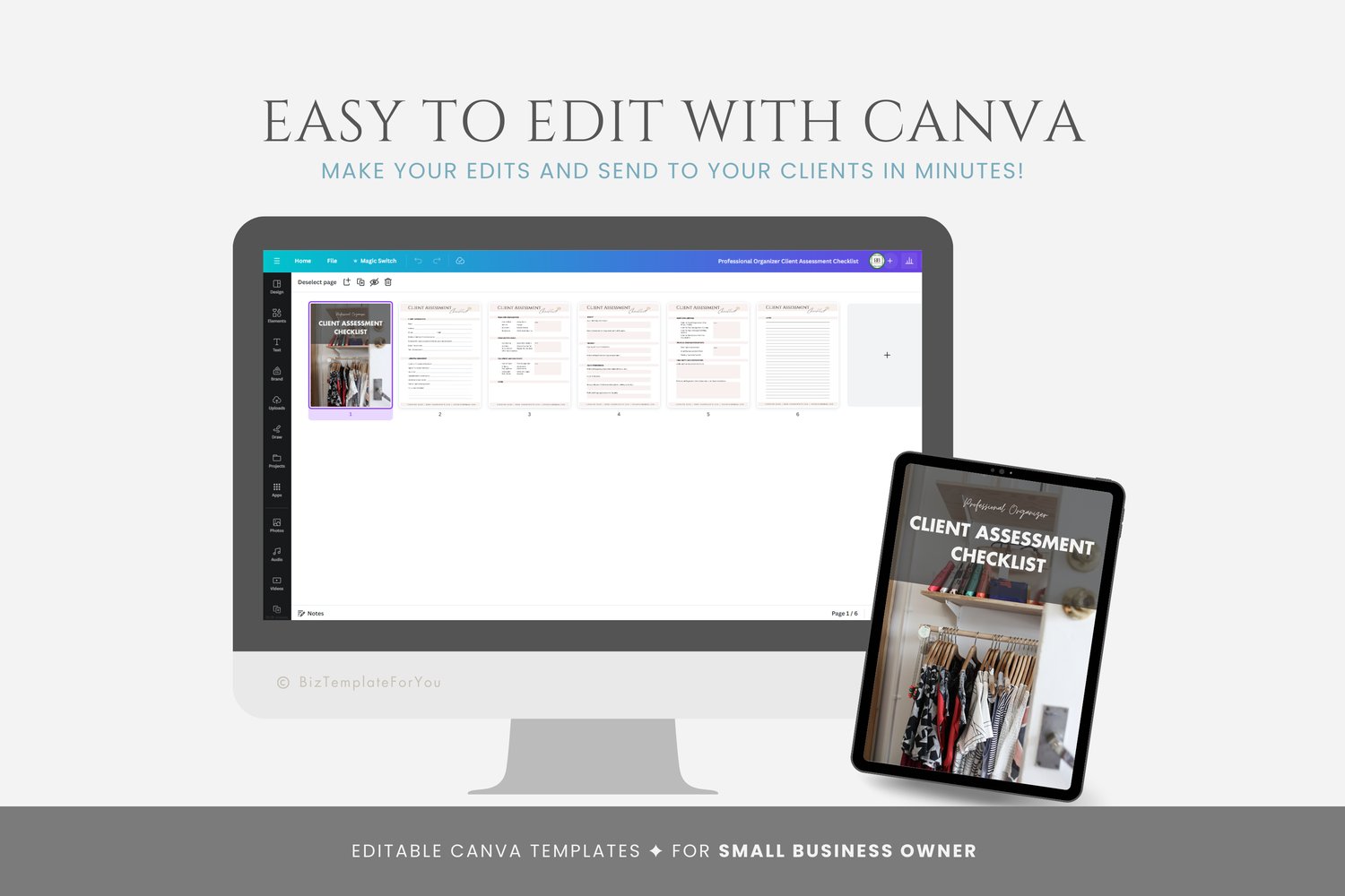 Editable Professional Organizer Client Assessment Checklist Template, Professional Organizer Forms, Business Checklist Template, Canva editable #4076