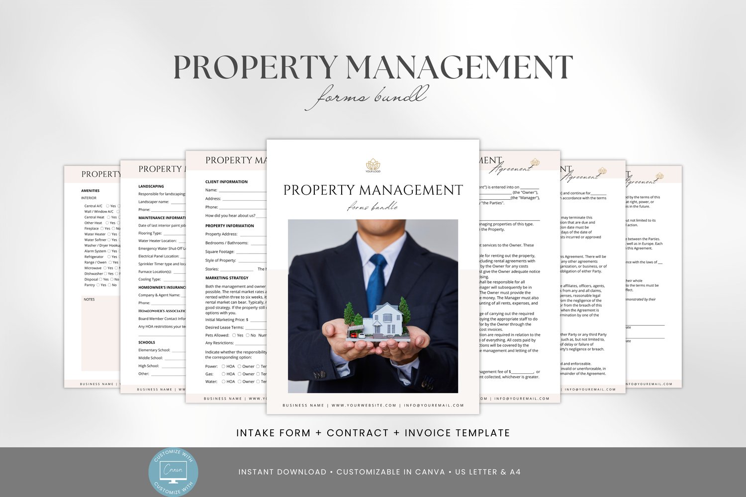 This bundle includes an intake form to gather key details from property owners, a client contract to outline terms clearly, and an invoice template for organized, professional billing.