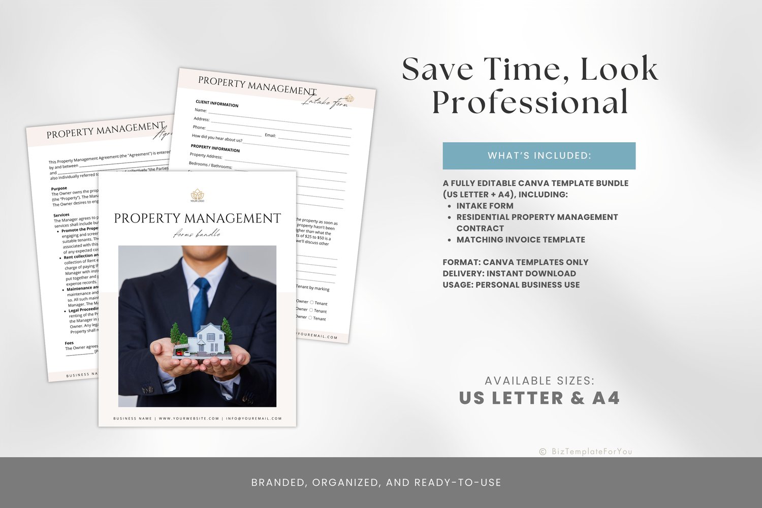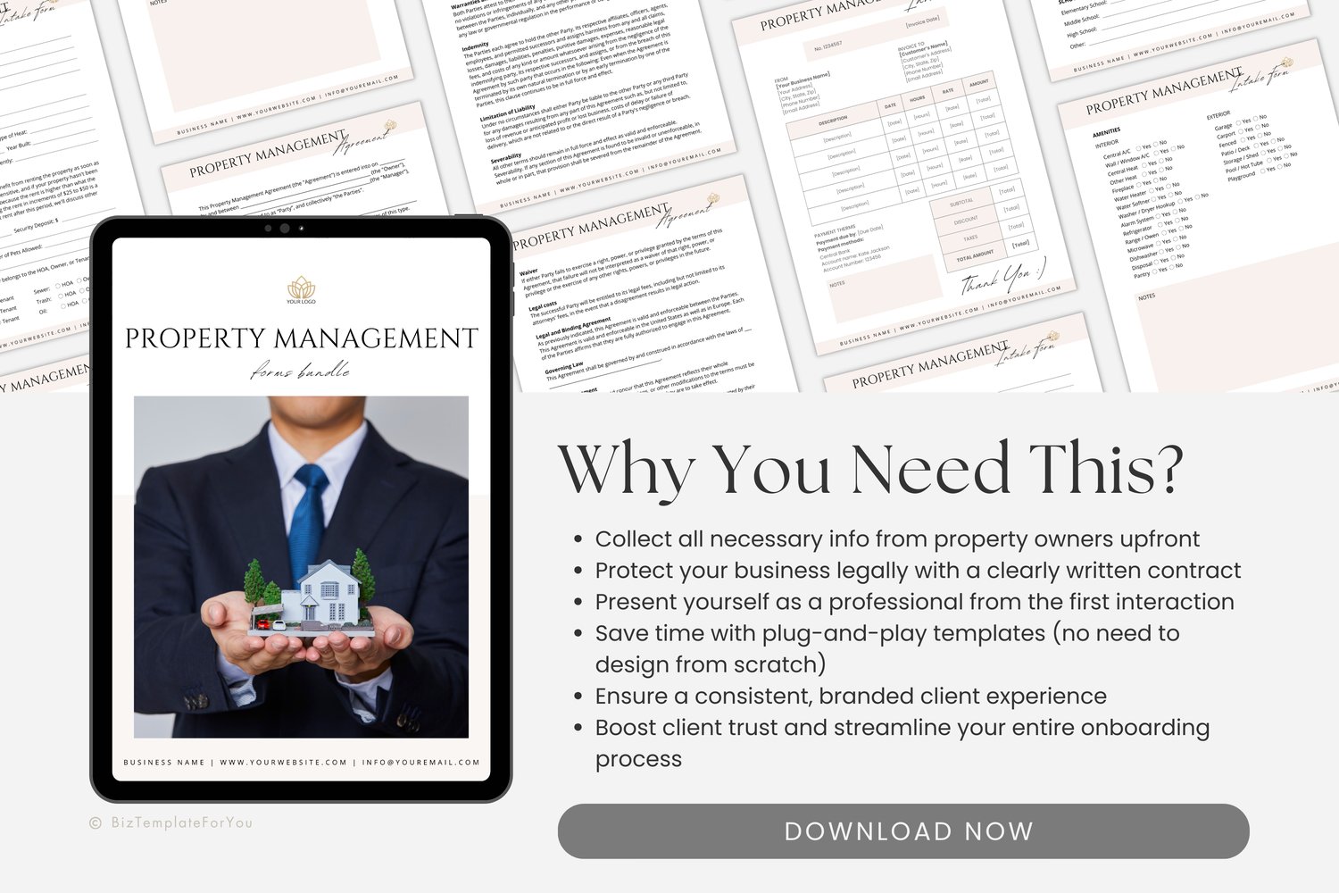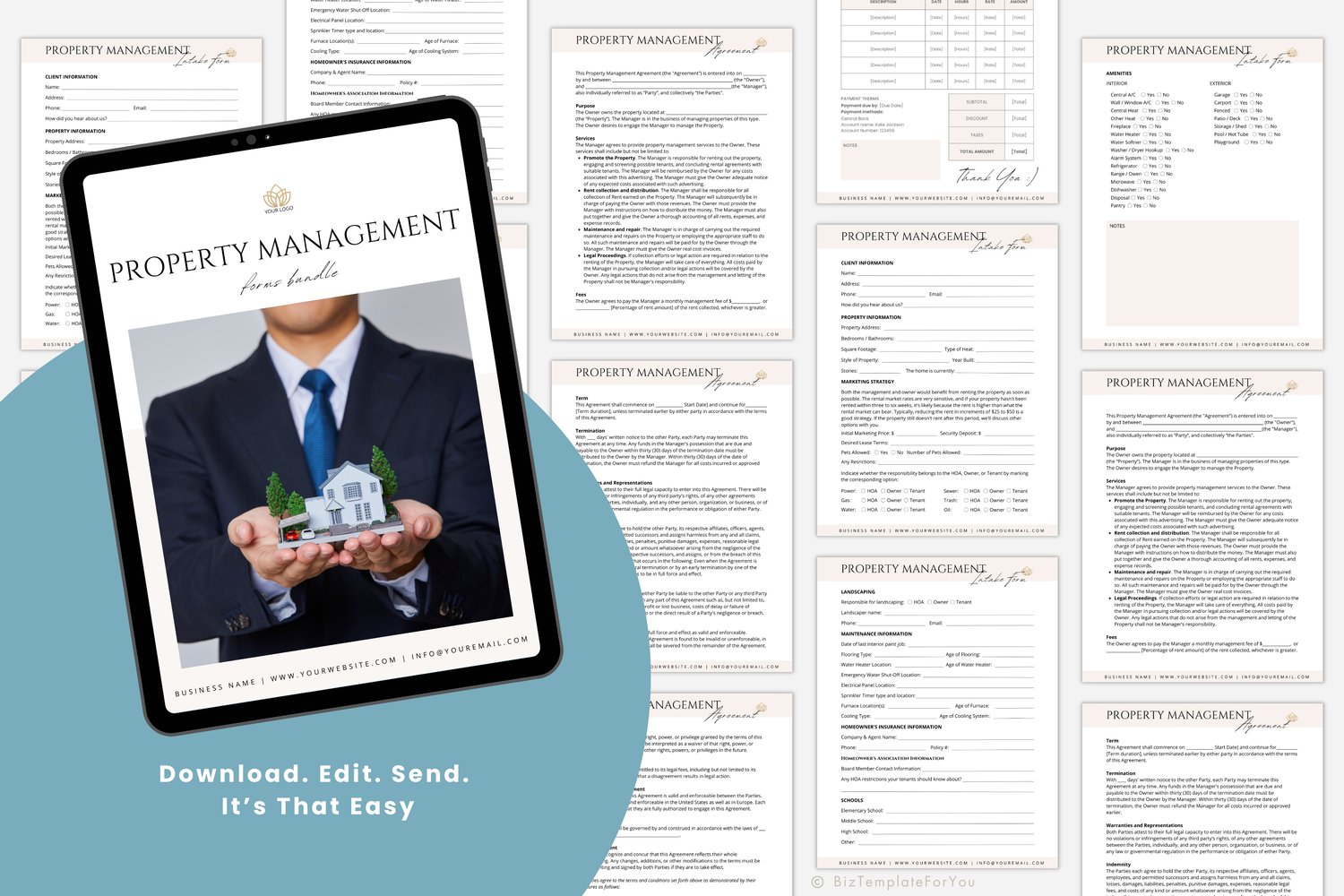 Editable Property Management Contract Template, Real Estate Property Management Service Agreement incl. Intake Form and Invoice Template #3033