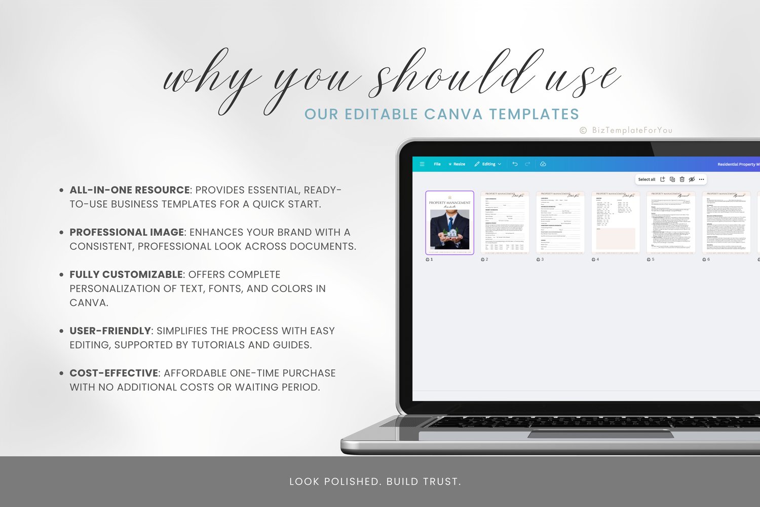 + All elements of our templates are FREE. BizTemplateForYou bears no responsibility for situations wherein the client utilizes PRO elements within Canva, resulting in charges incurred by Canva.