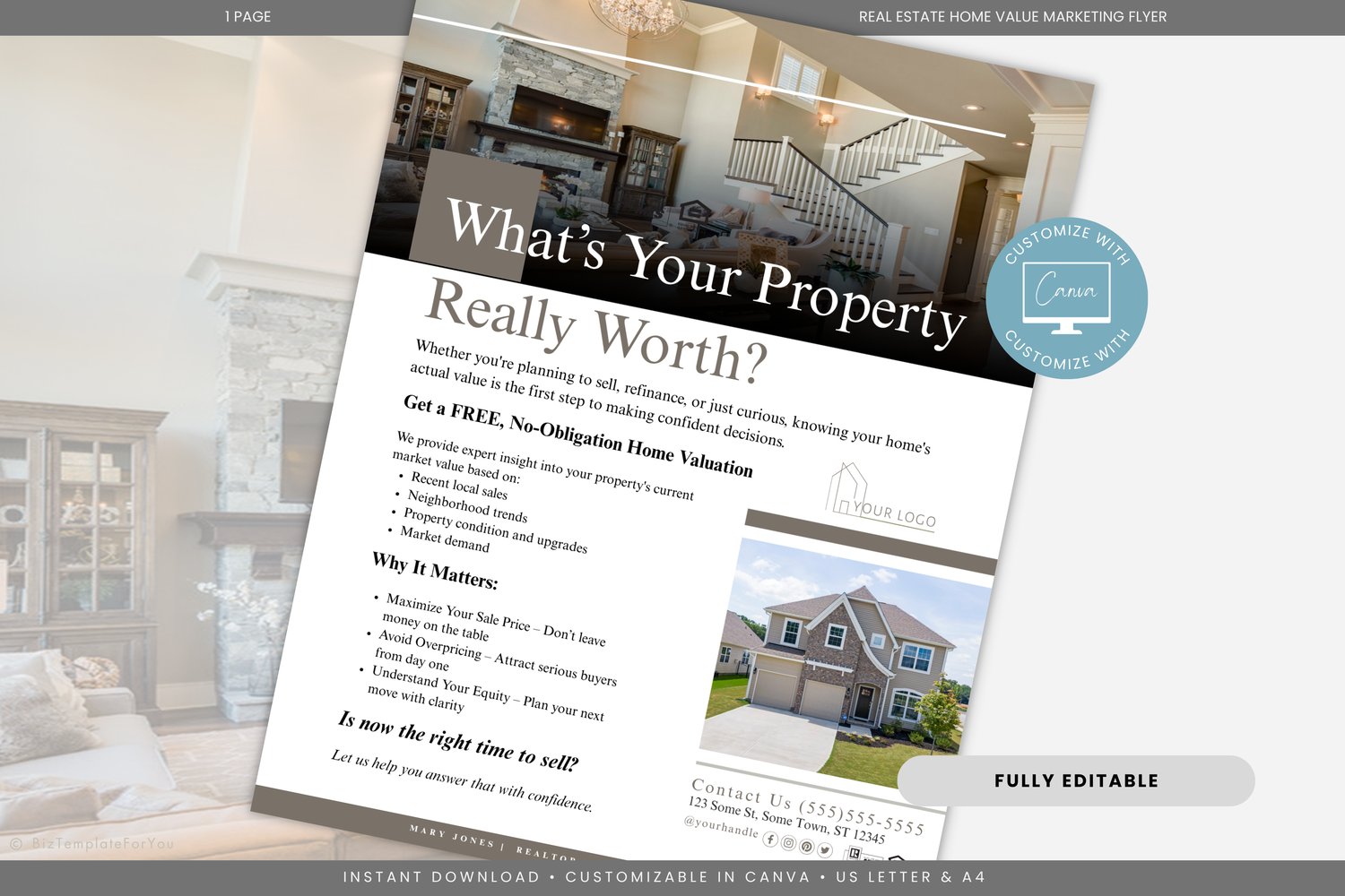 Editable Real Estate Home Valuation Flyer Template, Canva Realtor Marketing, Home Value Estimate Printable, Real Estate Agent Flyer, CMA #8020