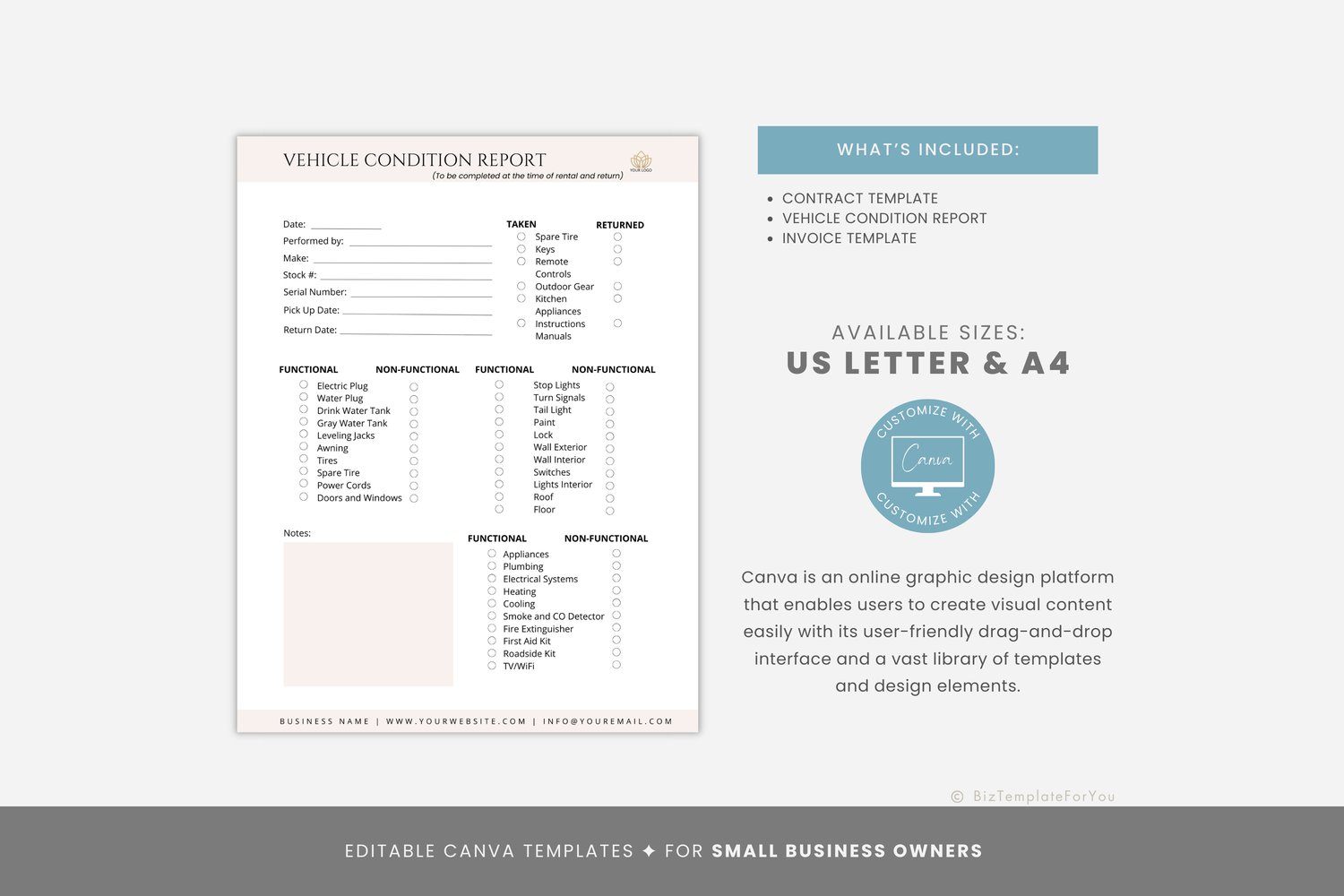 Editable Recreational Vehicle (RV) Rental Agreement Template, Motorhome Rental Contract, Camper Van Rental Contract, editable in Canva #6085