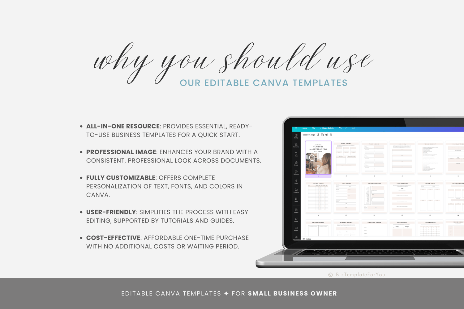 + All elements of our templates are FREE. BizTemplateForYou bears no responsibility for situations wherein the client utilizes PRO elements within Canva, resulting in charges incurred by Canva.