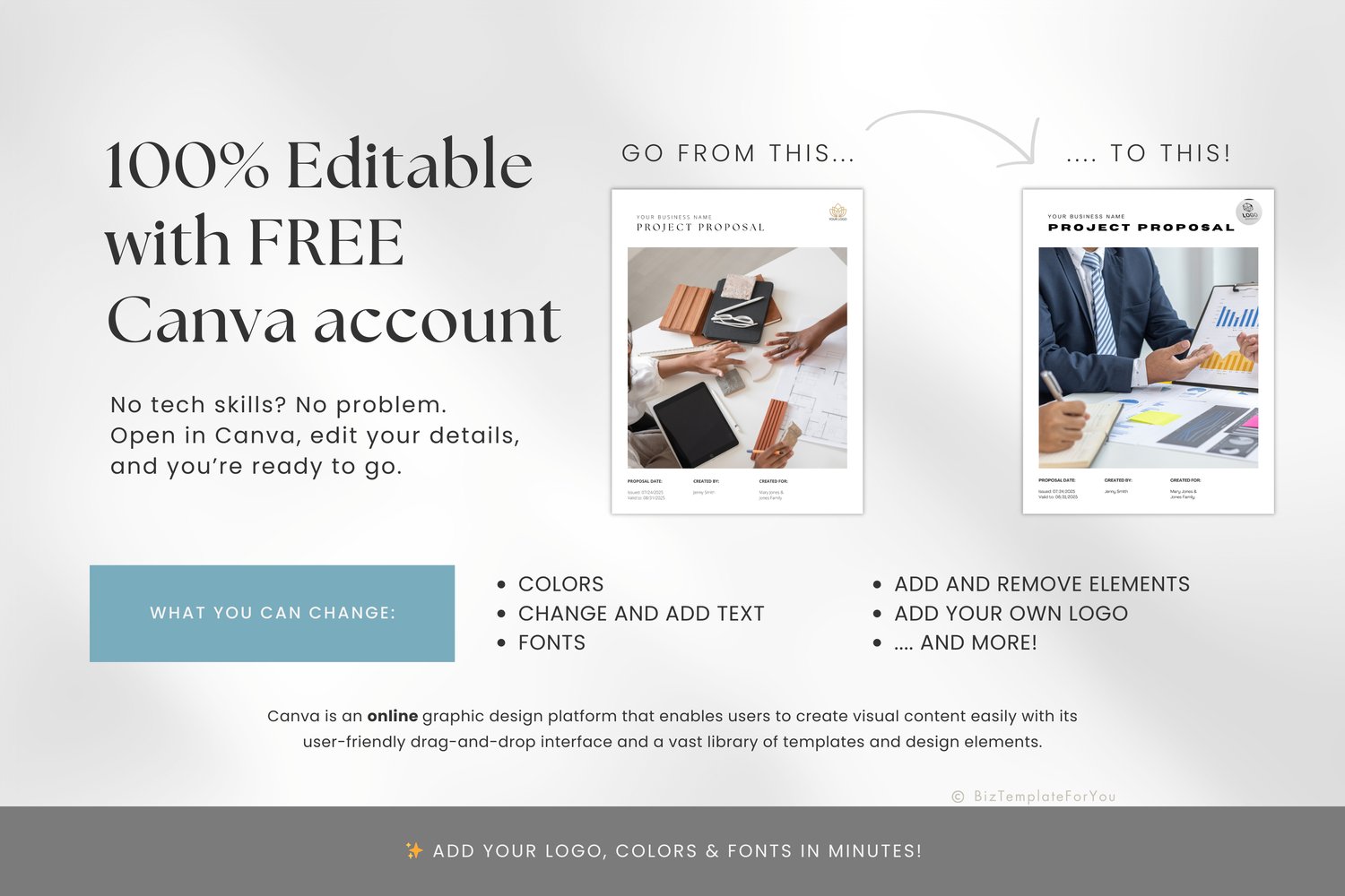 + All elements of our templates are FREE. BizTemplateForYou bears no responsibility for situations wherein the client utilizes PRO elements within Canva, resulting in charges incurred by Canva.