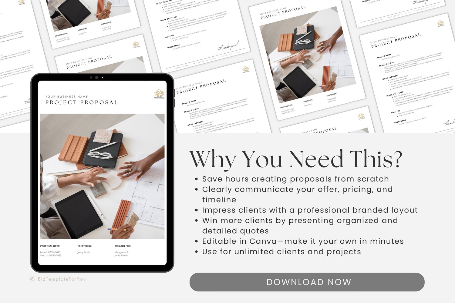 👉 Stop sending messy emails or unprofessional quotes. Grab this Simple Project Proposal Template today and turn your offers into booked projects—fast.