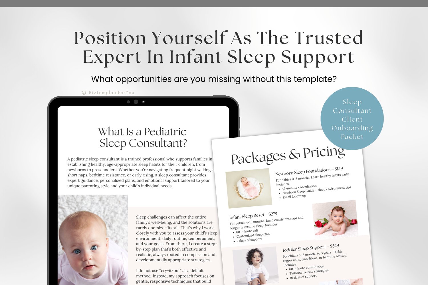 Please note: the client intake form and contract are not included in this bundle—they’re available separately in the shop - https://biztemplateforyou.shop/b/sleep-consultant-forms-bundle-canva.