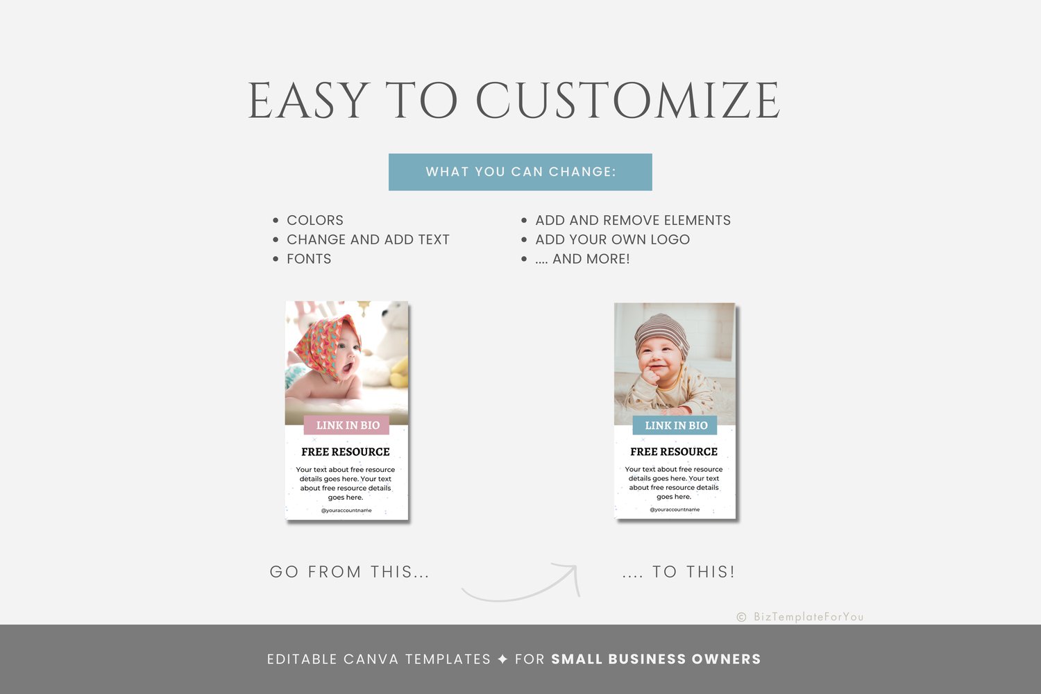 The "Baby World" Social Media Kit is a premium social media template bundle. It is ideal for pediatric sleep consultants, postpartum doulas, birth doulas, lactation consultants, and other baby-related service providers. The kit is ready to customize in Canva. Each design can be edited with your photography and text to align with your brand and style.