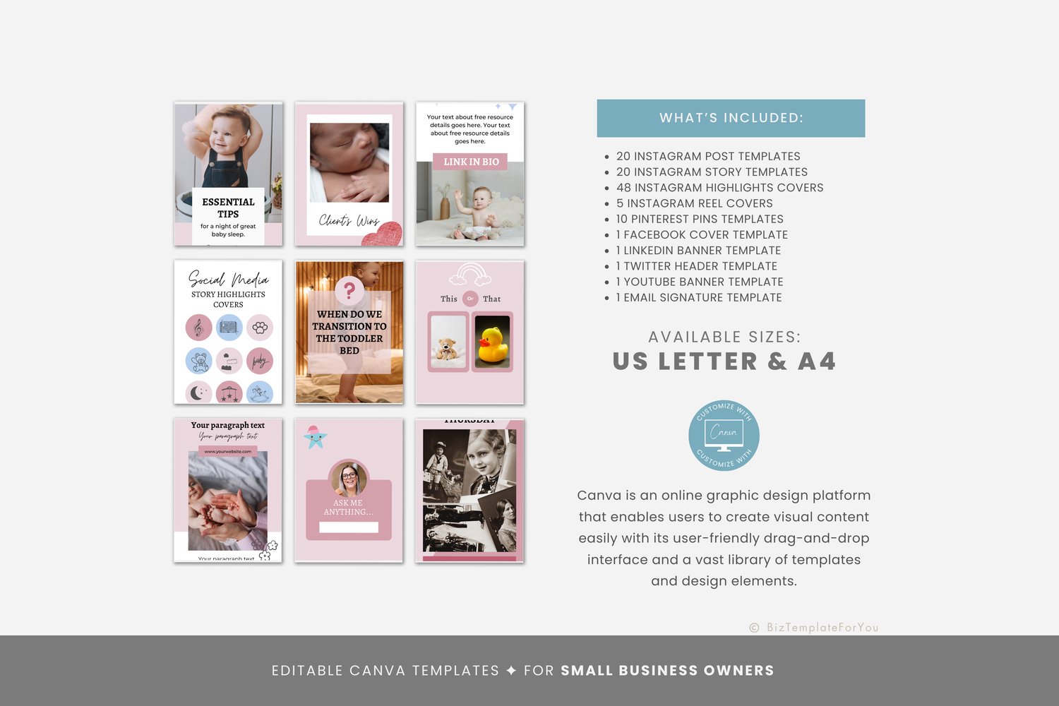 Social Media Kit, Sleep Consultant Social Media, Social Media Planner, Baby Sleep Coach Social Media,Pediatric Sleep Coach Online Marketing #1074