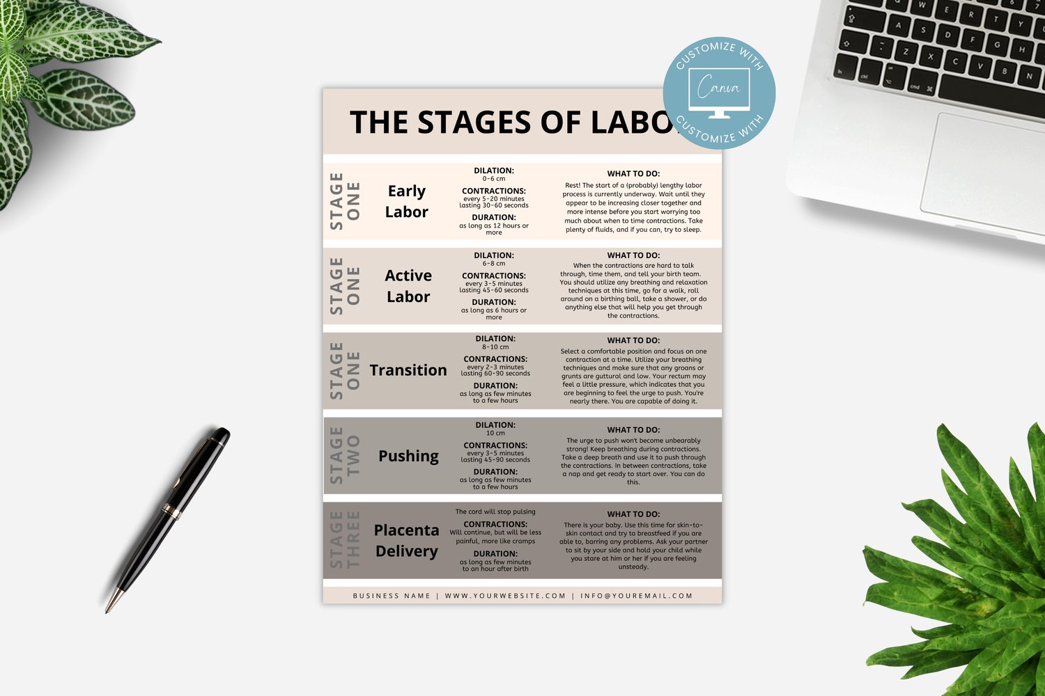 ✦ HOW TO USE YOUR STAGES OF LABOR HANDOUT TEMPLATE ✦