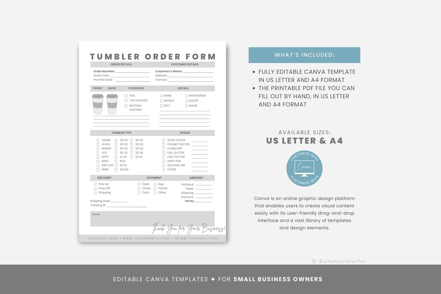 Editable Tumbler Order Form Template, Printable Tumbler Order Form Template, Small Business Order Form, Tumbler Order Template, Canva editable #4090