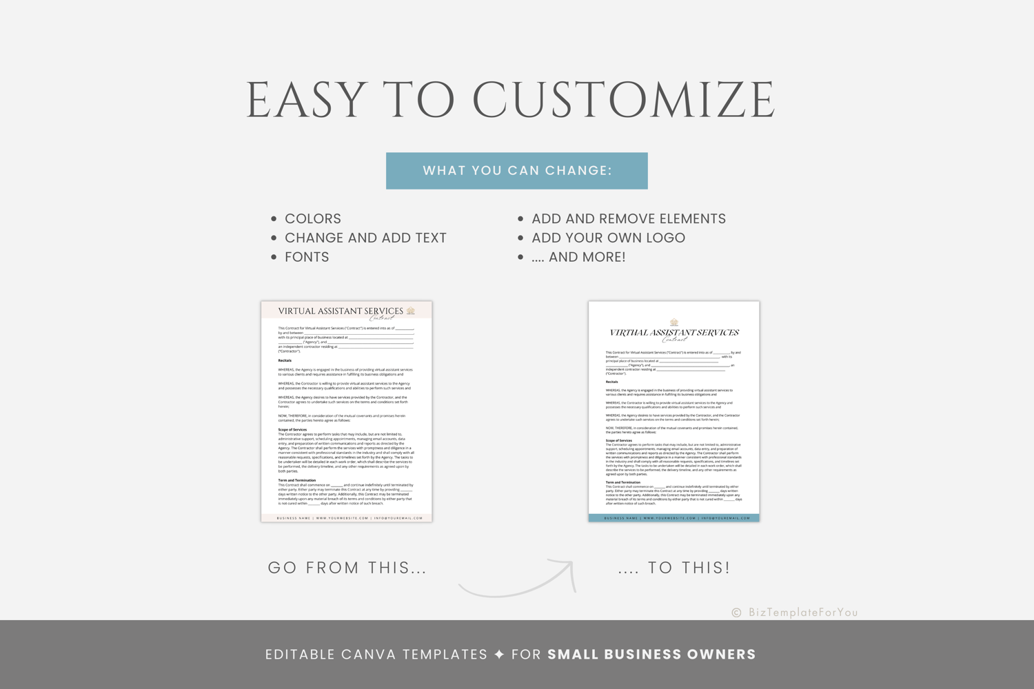 + All elements of our templates are FREE. BizTemplateForYou bears no responsibility for situations wherein the client utilizes PRO elements within Canva, resulting in charges incurred by Canva.