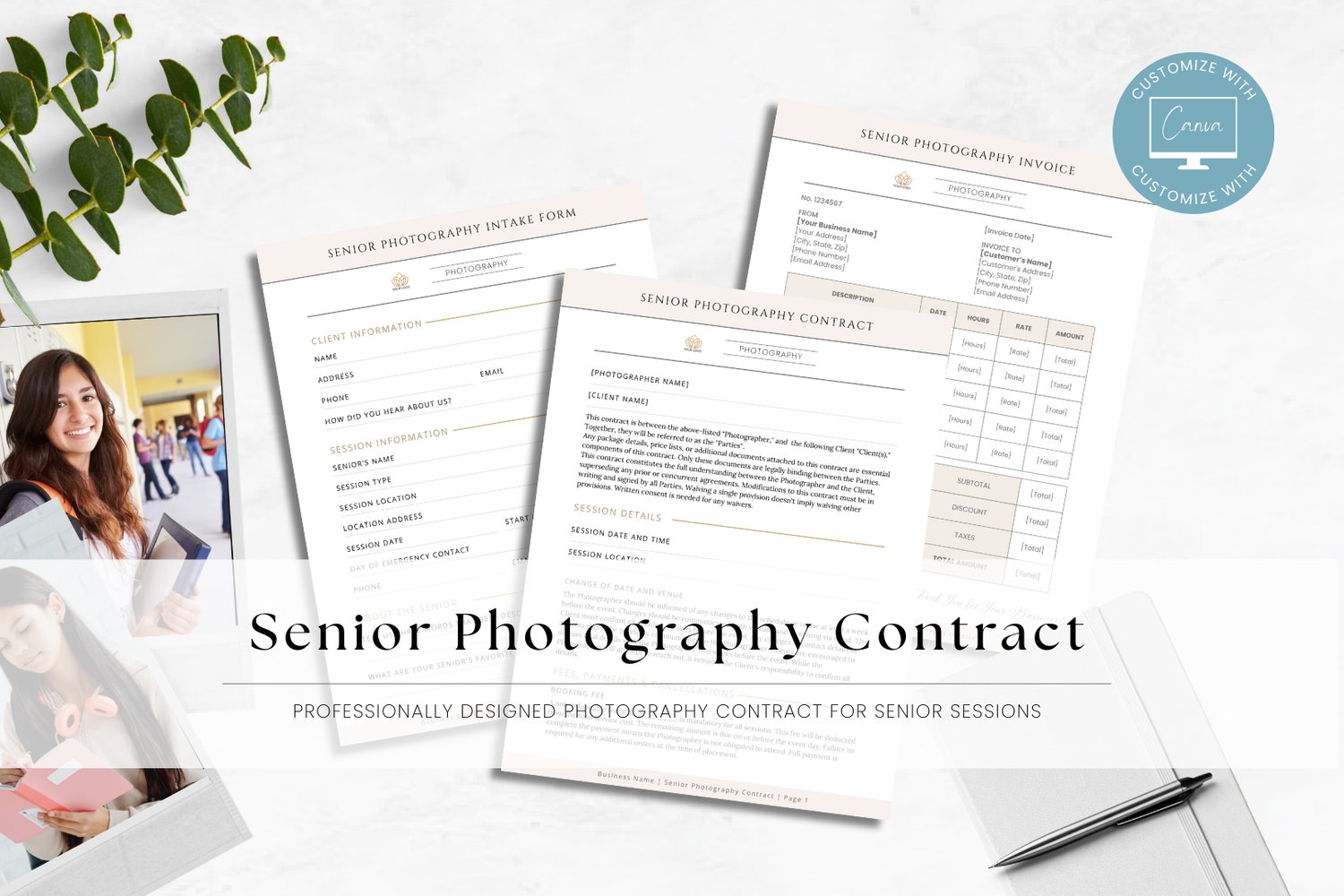 Senior Photography Contract Template - Editable in Canva